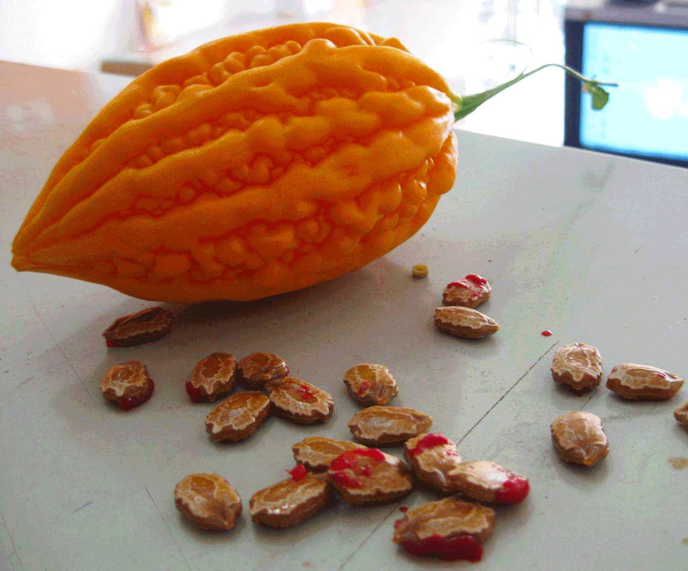 酷似苦瓜,外皮粗糙,像癞蛤蟆的皮一样,故名癞葡萄。小时候院子里种的很多,它特别能结,一颗上面能长很多个,成熟之后金黄金黄的很好看,果实有的酸涩,有的非常甜,全凭手气。它的籽花纹独特,吃完籽儿我们都能玩很长时间。