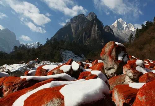 除了冰川,在海螺沟景区旁边的燕子沟和雅家梗还分布着大片的红石滩,蓝天、白雪、红石,强烈的色差会让你的相机里增加不少好片子。海螺沟真的好美丽,很美的地方,而且风景很棒很棒的景区。大冰瀑布太美,三号营地能看到壮阔的冰川,并且比较壮观。